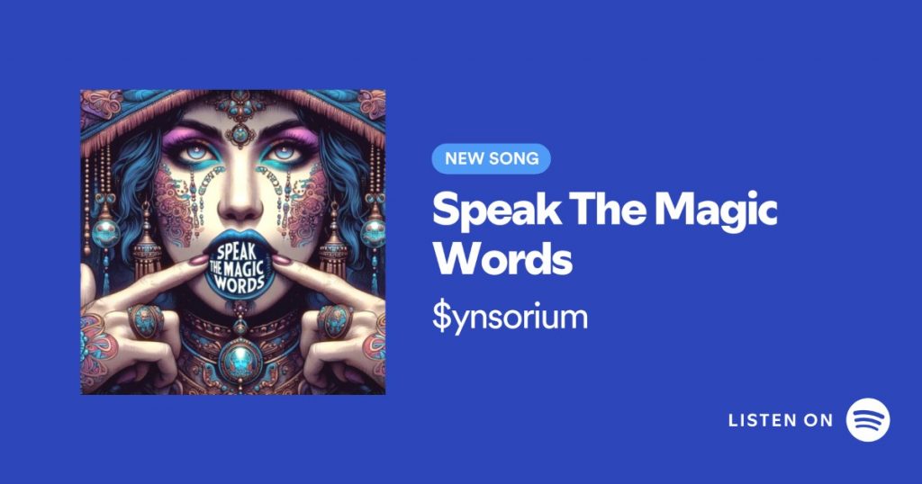 “Speak The Magic Words”, The new single published by Composer-Filmmaker. Lyrics & Vocals by $ynsorium in collaboration with guitarist/composer David Bacote. Listen Now On Spotify!